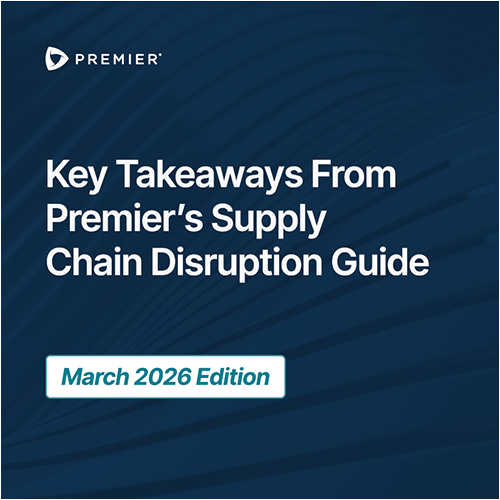 The end-to-end global supply chain continues to experience ongoing disruptions, workforce challenges and inflationary pressures, which are affecting multiple economies and industries, including the U.S. healthcare industry. At Premier, we remain committed to leading the industry in finding innovative ways to solve for these challenges and enable healthcare providers access to the vital supplies necessary for high quality, cost-effective patient care. The following information provides the latest market updates, insights, resources and guidance for your supply chain teams as we continue to navigate global supply chain disruptions. |